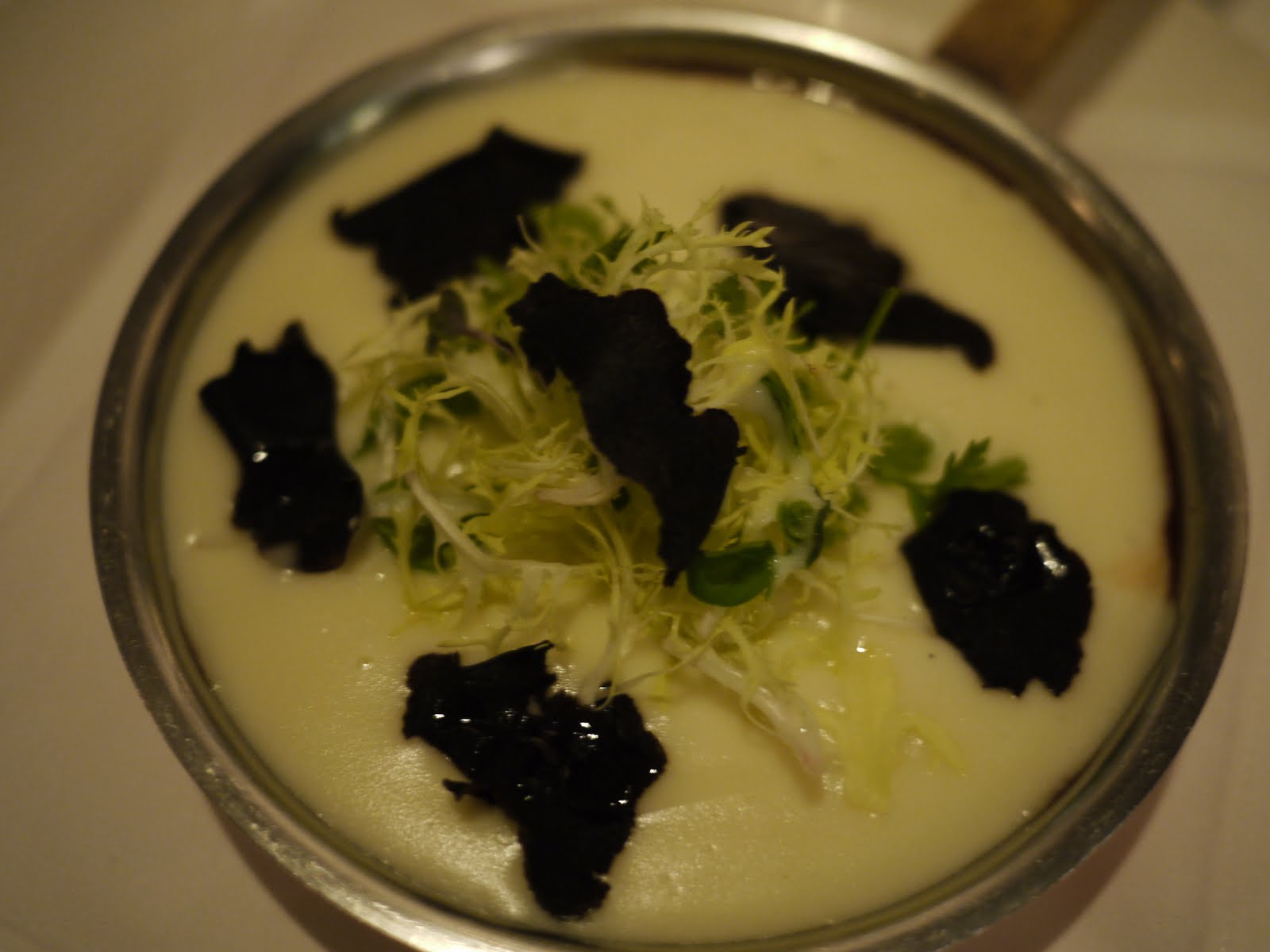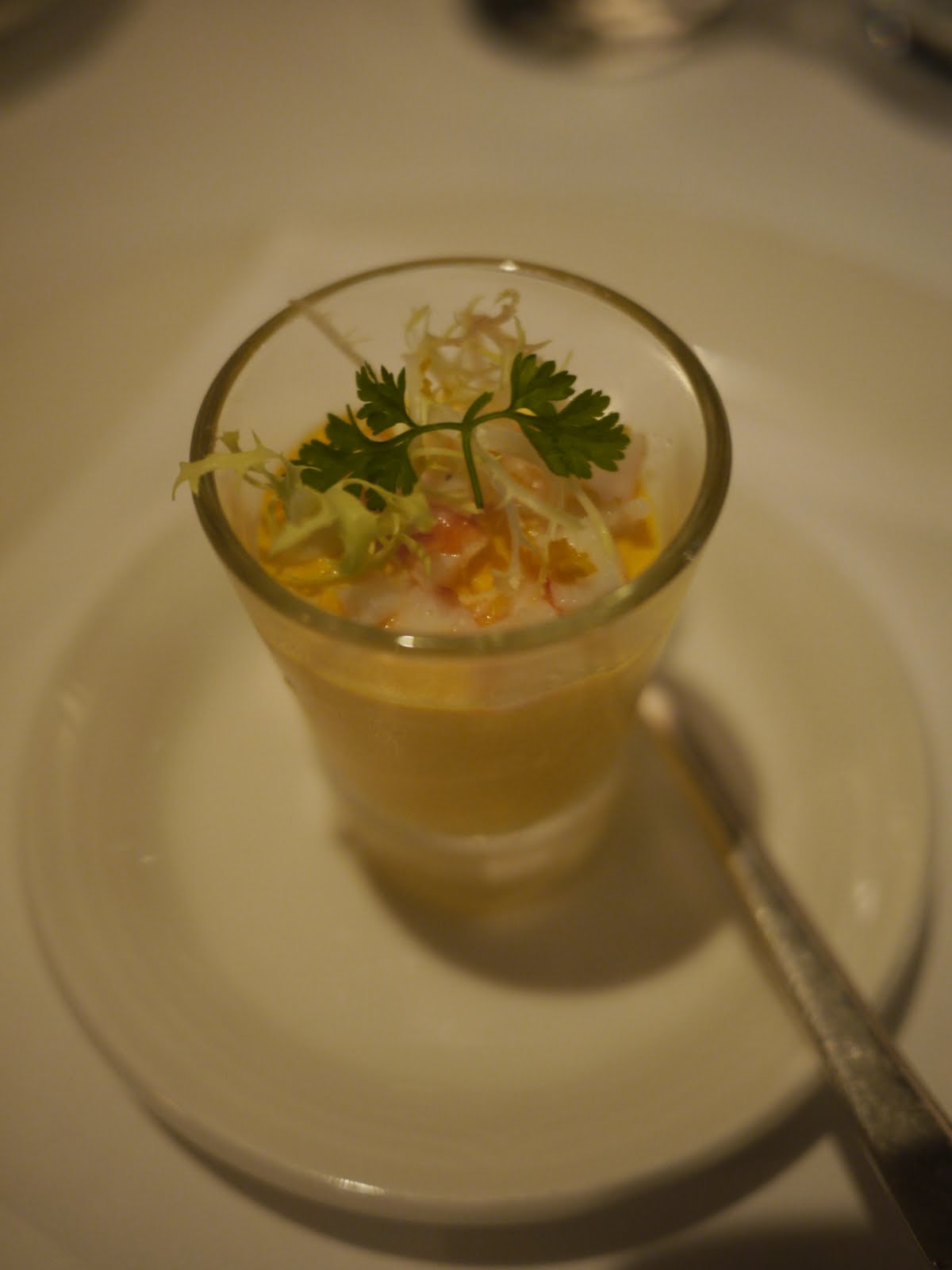 綿密鴨肝凍佐以醃清生薑,搭配酸甜杏桃醬,均衡纖細,