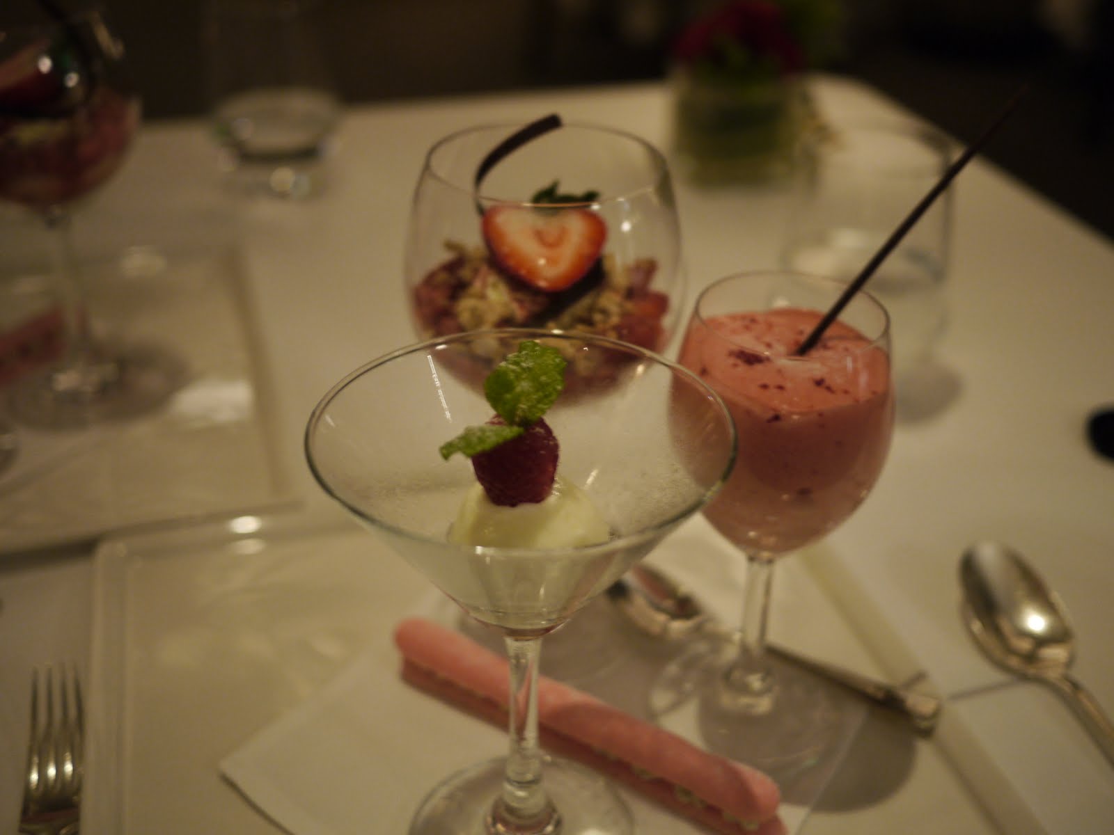 白色的是冰沙,旁邊那杯是蔓越梅慕斯,