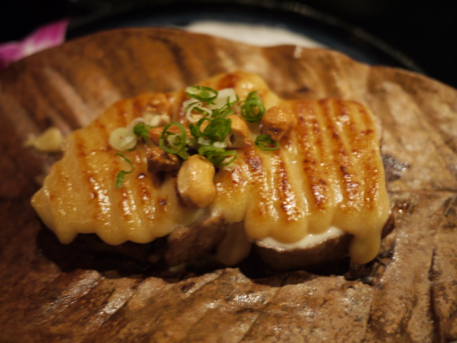 擺盤也很特別,卜葉的下面是一塊平面的熱石頭,