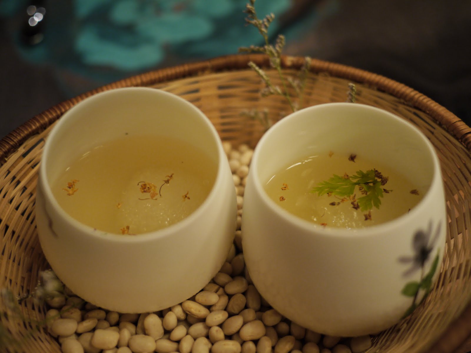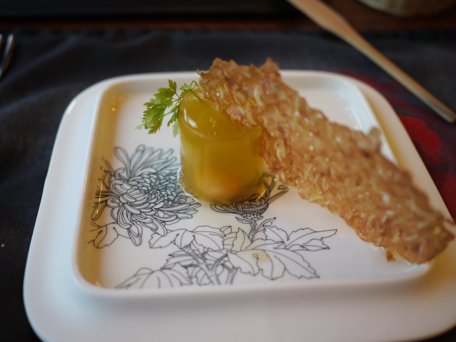 Steamed baby codfish with Taiwanese braised bamboo and espuma lemon grass flavor
